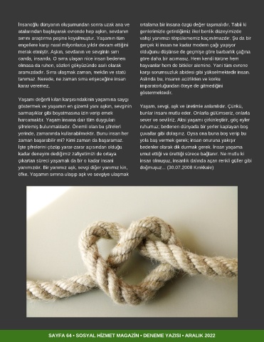 SAYFA 64 • SOSYAL HİZMET MAGAZİN • DENEME YAZISI • ARALIK 2022
