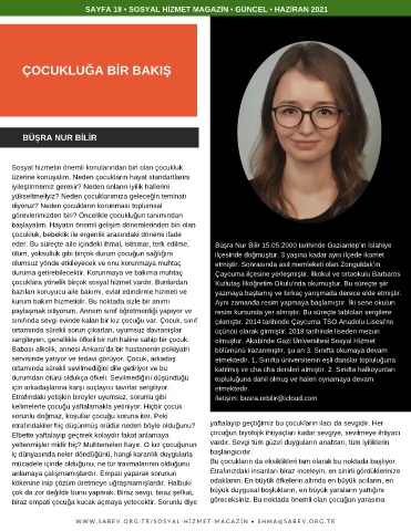 SAYFA 18 • SOSYAL HİZMET MAGAZİN • GÜNCEL • HAZİRAN 2021