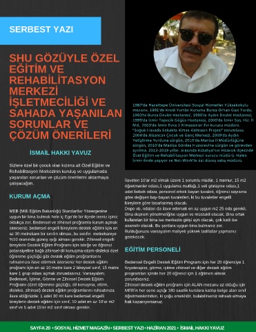 SAYFA 20 • SOSYAL HİZMET MAGAZİN • SERBEST YAZI • HAZİRAN 2021 • İSMAİL HAKKI YAVUZ