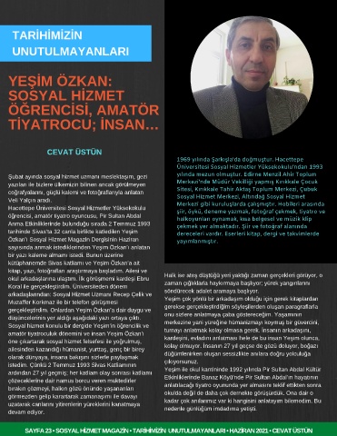 SAYFA 23 • SOSYAL HİZMET MAGAZİN • TARİHİMİZİN UNUTULMAYANLARI • HAZİRAN 2021 • CEVAT ÜSTÜN