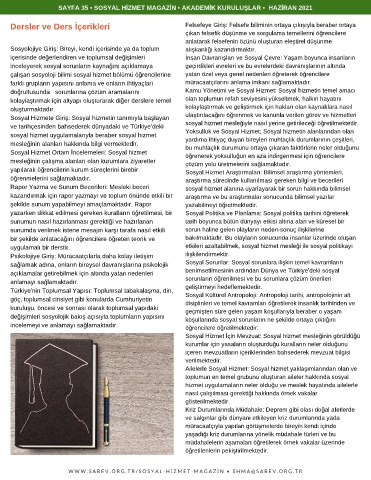 SAYFA 35 • SOSYAL HİZMET MAGAZİN • AKADEMİK KURULUŞLAR • HAZİRAN 2021