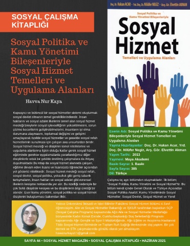 SAYFA 44 • SOSYAL HİZMET MAGAZİN • SOSYAL ÇALIŞMA KİTAPLIĞI • HAZİRAN 2021