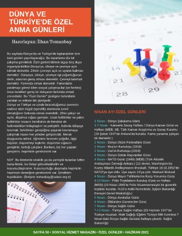 SAYFA 50 • SOSYAL HİZMET MAGAZİN • ÖZEL GÜNLER • HAZİRAN 2021