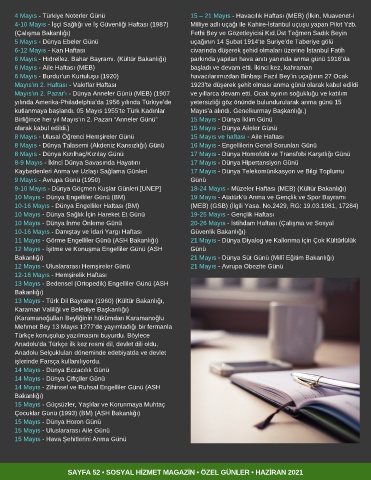 SAYFA 52 • SOSYAL HİZMET MAGAZİN • ÖZEL GÜNLER • HAZİRAN 2021