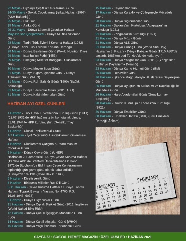 SAYFA 53 • SOSYAL HİZMET MAGAZİN • ÖZEL GÜNLER • HAZİRAN 2021